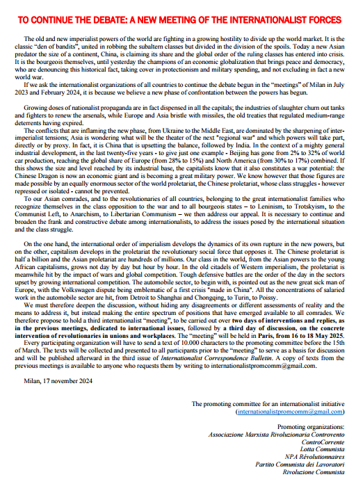 The ISL, which participated in the Italian editions of the Meeting, will also be present in France with a delegation of comrades from different countries who daily militate for the regroupment of revolutionaries on the road to form a new international.