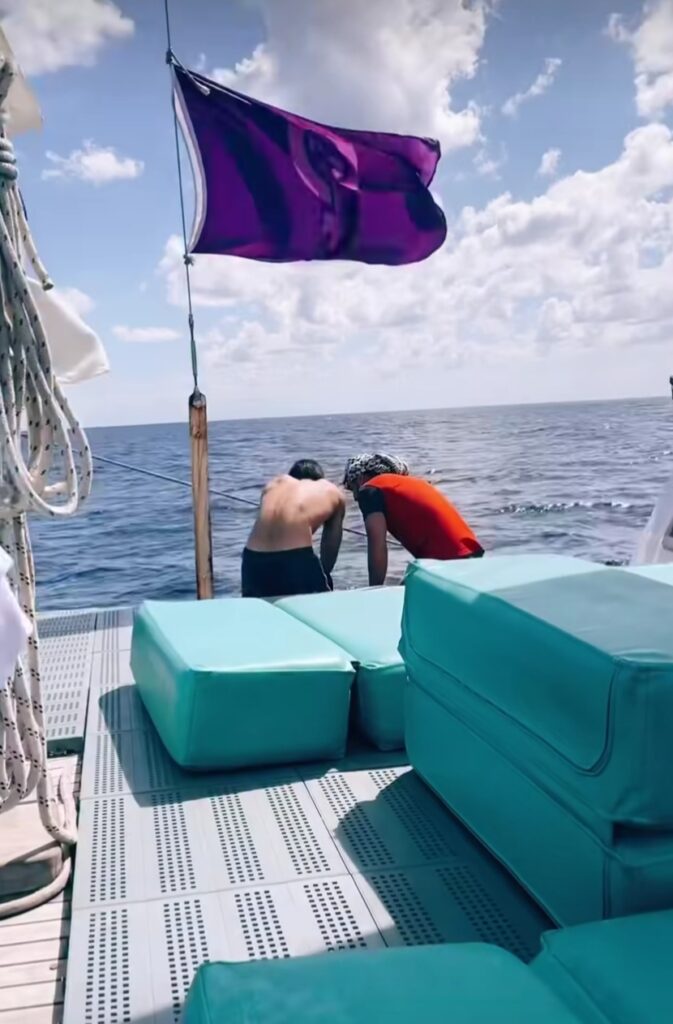 As you can imagine, comforts are minimal: many of us sleep on deck to lessen the effect of seasickness and showering is almost imaginary, as fresh water on board is a scarce and vital resource.