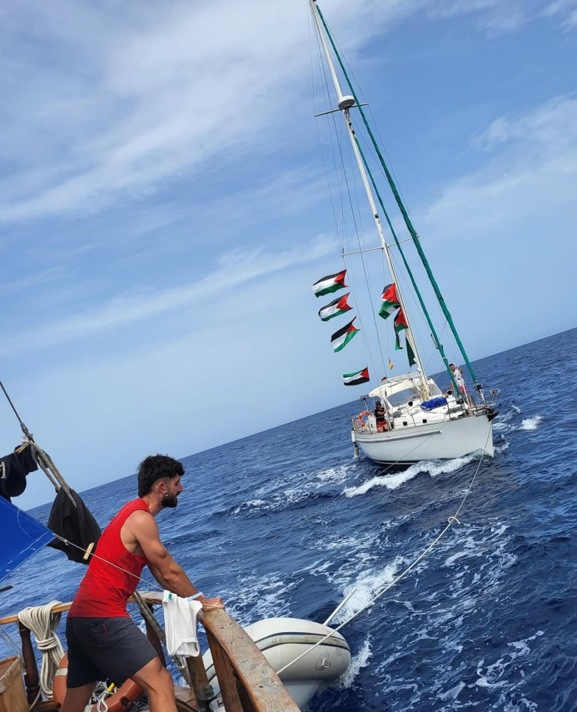Since we set sail for the first time, the flotilla has grown. Ships from Italy joined, and others from Greece will soon. Four days away from Gaza, tension will increase. We do not know what will happen in the face of Zionist threats. In any case, we hope to reach Gaza in seven days and break the blockade on humanitarian aid”.