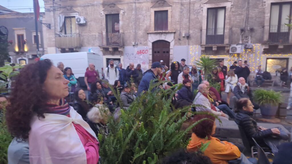 On Saturday 18th, several hundred people gathered to welcome multiple sailboats in the port of Catania (Blu Marina), which docked before setting course for Syracuse the following day. This was accompanied by militant speeches, countless slogans of “Free Palestine”, a rendition of “Bella Ciao”, and continued with a march that ended in Piazza Stesicoro (Piazza Gaza).