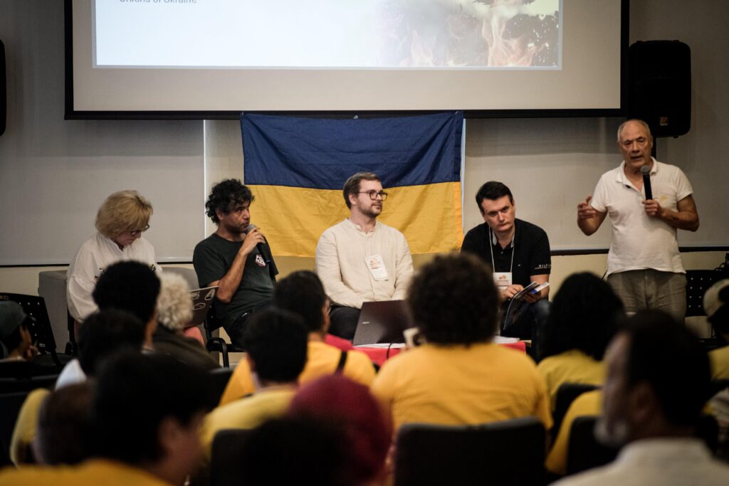 On the other hand, the diversity of conveners allows the participation of more sectors and different political and social expressions, and although we consider this amplitude essential for the struggle in the streets, in many occasions it does not contribute to positive results in terms of political definitions. In addition to what was said above regarding the absence of definitions on the role of progressivism in general terms, in reality the weight of the so-called campism among the conveners also prevented the expression of correct resolutions on current issues, such as the invasion of Russian imperialism on Ukrainian territory, which caused thousands of deaths and a war already years old in the heart of Europe. The absence of this denunciation in the initial convocation and in the final resolution was partly compensated for. First of all by the presence of the Ukrainian delegation, the Ukrainian Solidarity Network and Russian opposition activists. And by the support given to the ENSU Network in all its activities by MES-PSOL, by our delegation of the International Socialist League (ISL) and by other organizations of the SU, who pledged to continue to support the just right of the Ukrainian people to defend themselves against this aggression, while doing so independently and critically of the Zelenski government and denouncing the expansionist and militarist plans of NATO.