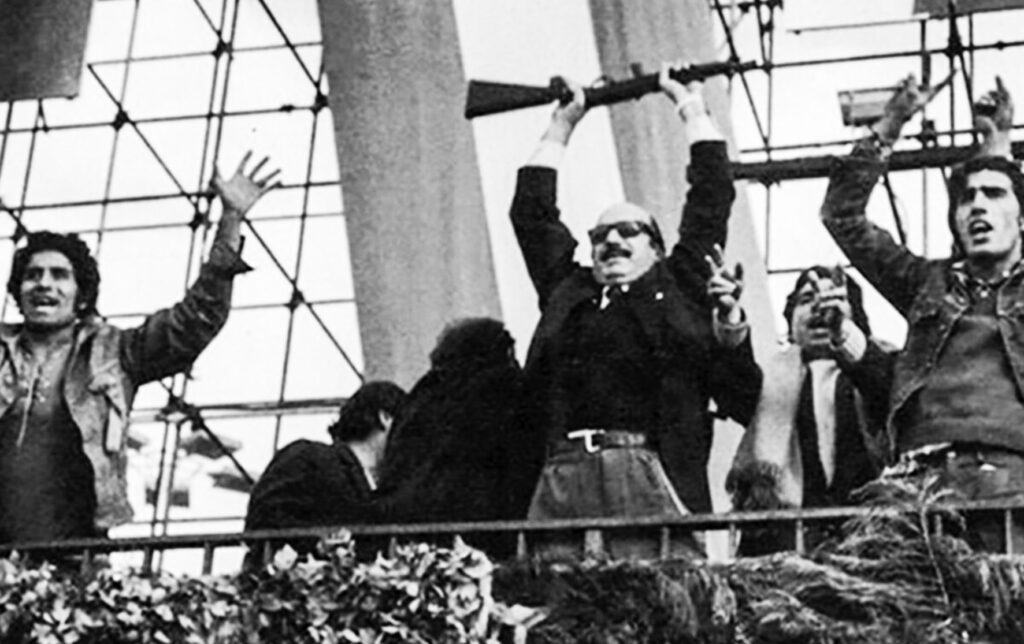 La derecha peronista copando el palco, Ezeiza, 1973.