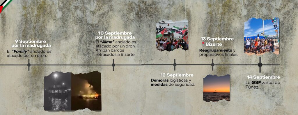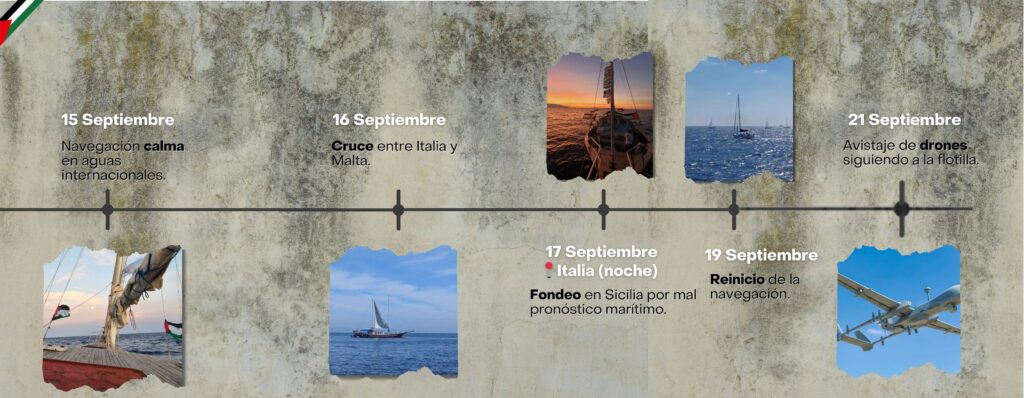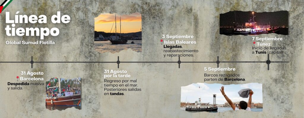 Desde su partida en Barcelona hasta su destino en Gaza, seguimos cada paso de la Global Sumud Flotilla (GSF). Una vez interceptada y abordada la GSF, secuestrados y liberados los activistas; aquí puedes repasar los hitos del recorrido y los videos actualizados de Cele Fierro.
