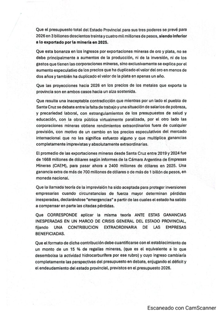 Por eso sostenemos una posición nítida: prohibición de la megaminería metalífera, defensa integral de glaciares y cuencas, y una transición productiva que garantice trabajo y salarios sin destruir el futuro.