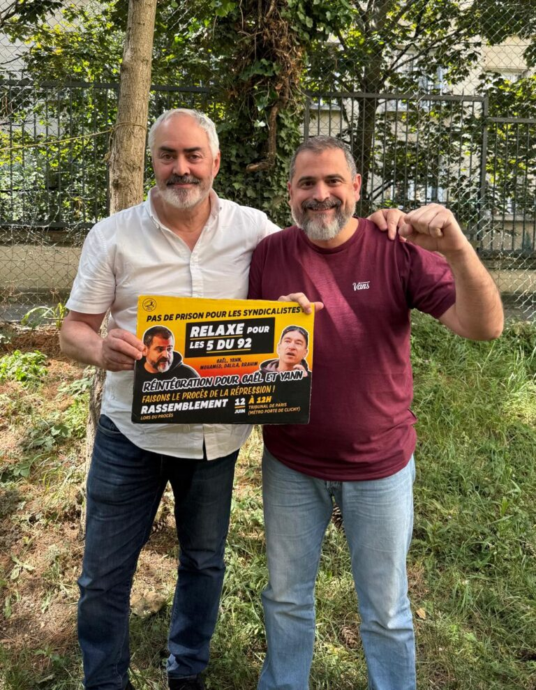 A Parigi, tra gennaio e luglio 2014, si è svolto lo sciopero dei postini di «La Poste» (azienda postale nazionale francese) contro i contratti precari dei lavoratori e la “ristrutturazione”. Durante lo sciopero, i compagni Gaël, Yann e altri tre postini in rappresentanza del sindacato SUD e in solidarietà con la lotta si sono presentati due volte alla delegazione sociale dell’azienda. Ora, undici anni dopo, in un chiaro segno di persecuzione sindacale e nel tentativo di limitare il diritto di protesta e di sciopero, sono stati licenziati e accusati di “violenza” e “violazione di domicilio professionale”, per cui potrebbero essere condannati a 5 anni di carcere e 75.000 euro di multa.