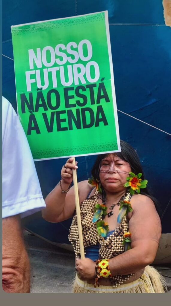 “Estamos aqui para dizer: ‘parem de nos matar’. Parem de matar nossas florestas. Parem de vender nossos rios. Enfrentamos muitas lutas, mas não vamos desistir. Na COP 30, eles estão falando de clima, mas não estão falando de demarcação do nosso território, onde nosso povo está perdendo vida, onde tem criança, mulher e indefeso sendo atacado, até pela polícia, pelo Estado, sem ordem judicial. Mas nós não vamos desistir. Somos todos Guarani Kaiowá”, complementou Nadia, unindo a causa de seu povo à luta do Guarani Kaiowá.