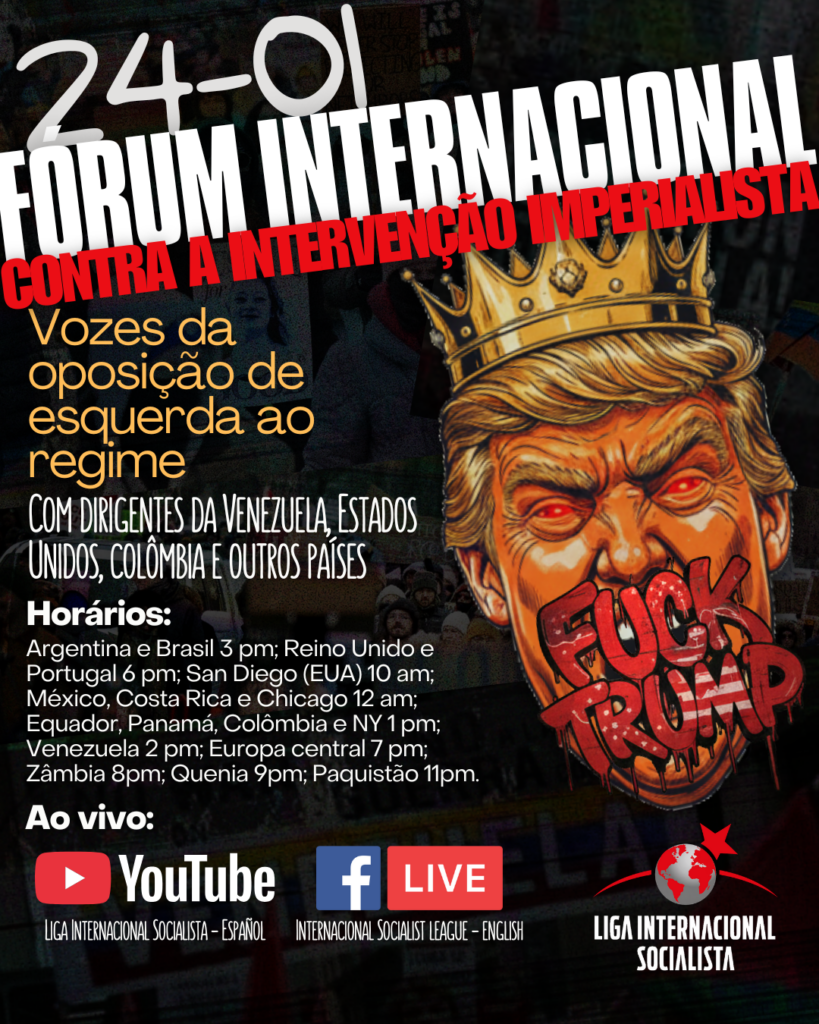 Como parte desta Campanha e como contribuição aos debates em curso, a LIS convoca o Fórum Internacional “Contra a intervenção imperialista na Venezuela, que será realizado no próximo sábado, 24 de janeiro. O evento contará com a participação de dirigentes da Venezuela, Colômbia, EUA e outros países. Convidamos você a divulgar o Fórum virtual e a participar através das redes sociais da LIS.