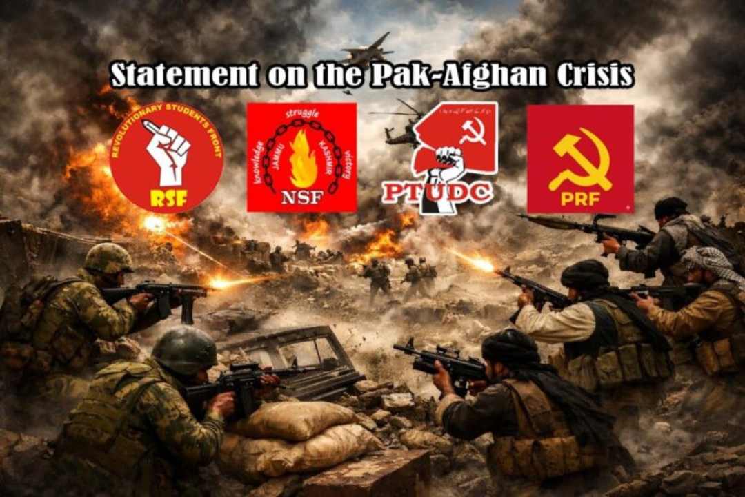 Em um comunicado de imprensa conjunto emitido pela Pakistan Trade Union Defence Campaign (PTUDC), pela Revolutionary Students Front (RSF), pela Jammu Kashmir National Students Federation (JKNSF) e pela Revolutionary People’s Front (PRF), afirmamos que a escalada do conflito entre Paquistão e Afeganistão para uma guerra direta sobre a questão do terrorismo transfronteiriço é nada menos que uma tragédia. Mais uma vez, serão as massas pobres de ambos os lados da Linha Durand – especialmente as populações pashtun – que sofrerão o impacto desse conflito. Essa situação não surgiu da noite para o dia, é o resultado de décadas de implementação de políticas pelo imperialismo dos EUA, pelas monarquias do Golfo e pelos Estados da região, inclusive o Paquistão, que nos trouxeram a esse momento crítico.